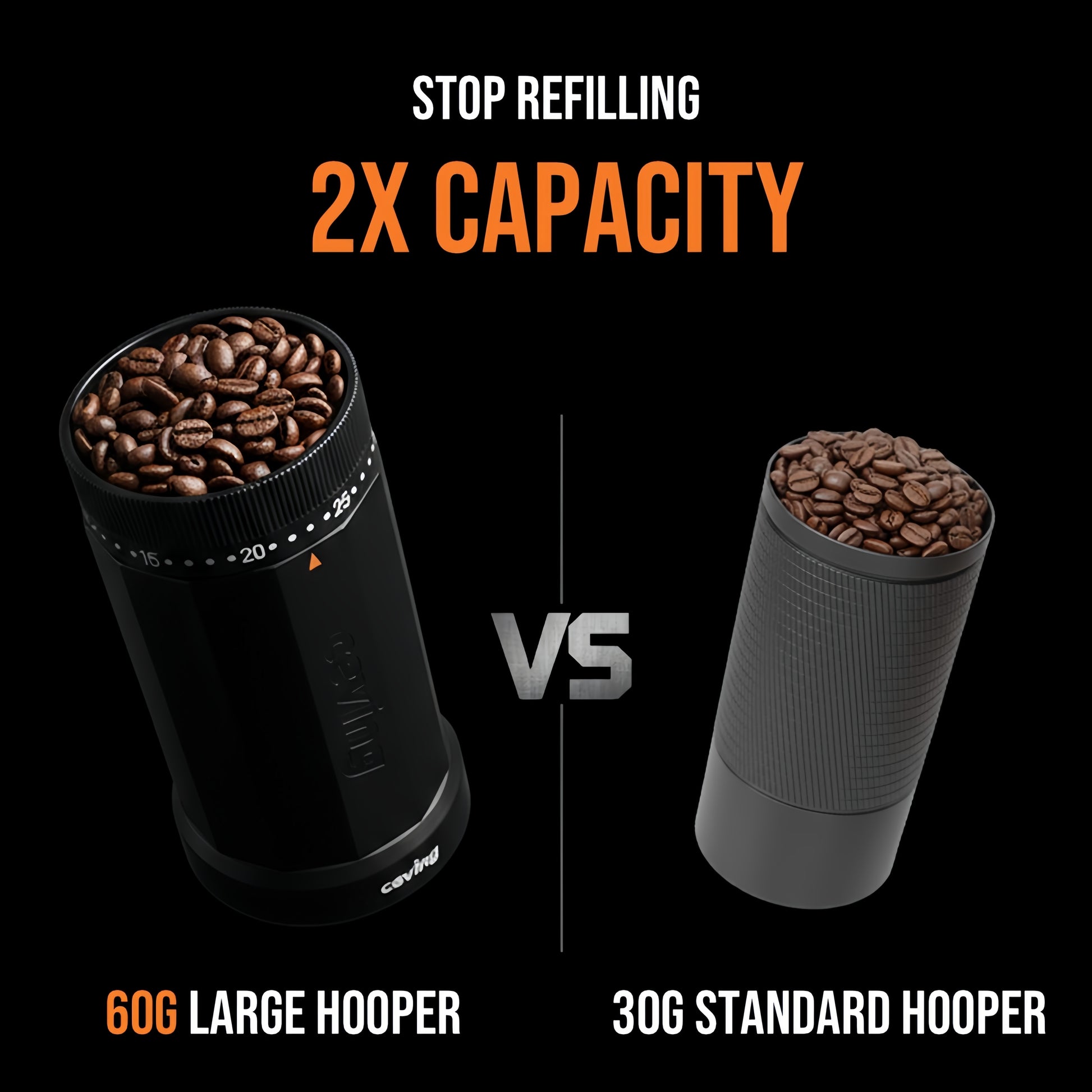 - 60g Large Bean Capacity – Stop refilling. Double the grind, zero the wait. Power through your morning or easily serve a group