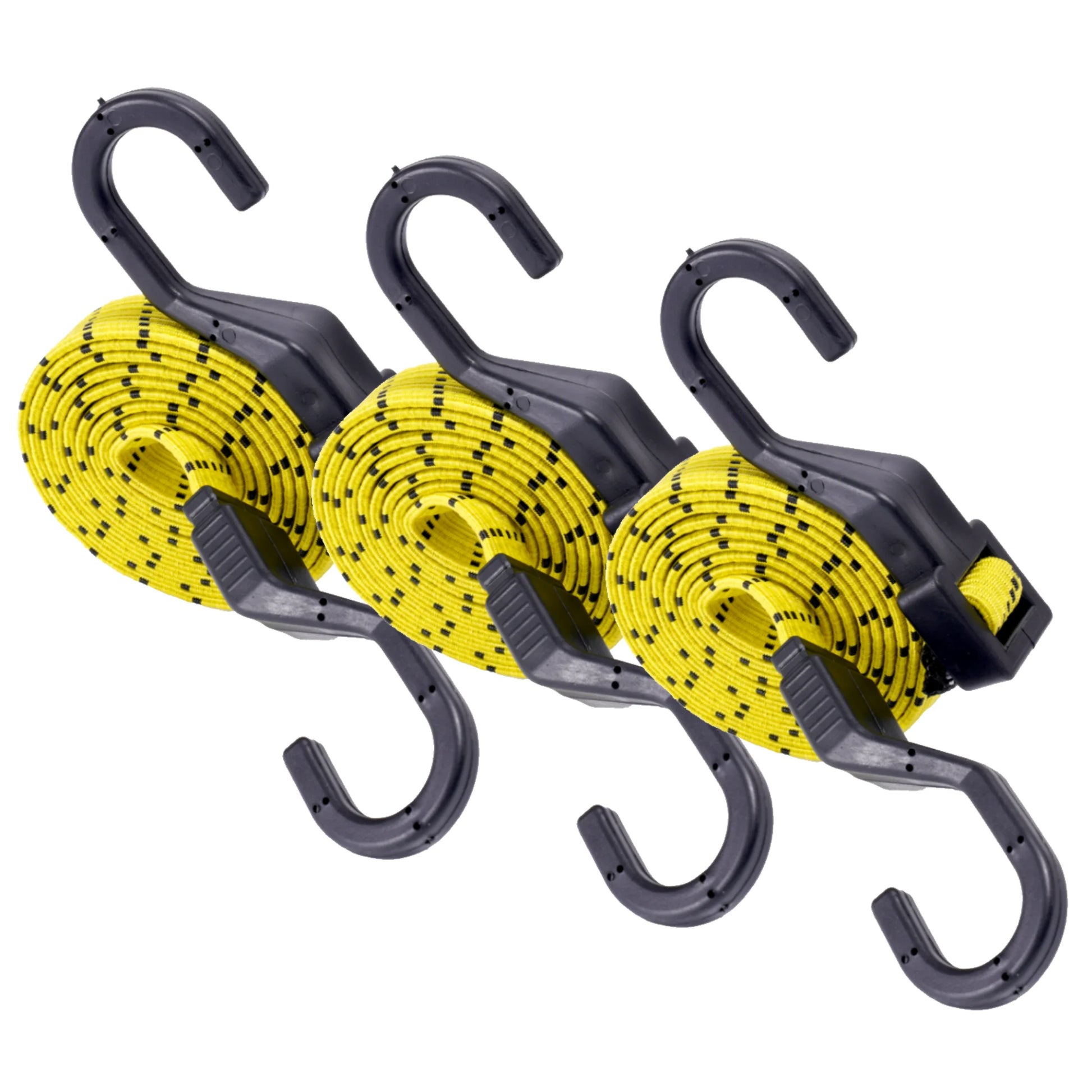 Lucky Straps 3-Pack 80" Adjustable Bungee Cords with Hooks, Heavy Duty, UV-Resistant Elastic Straps for Truck, Camping, Motorcycles, Bikes & Cargo Securing